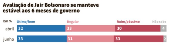 O que temos é o seguinte: a avaliação de “ótimo/bom” de Bolsonaro passou de 32% para 33%, ou seja, oscilou um ponto para cima.