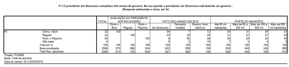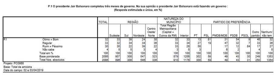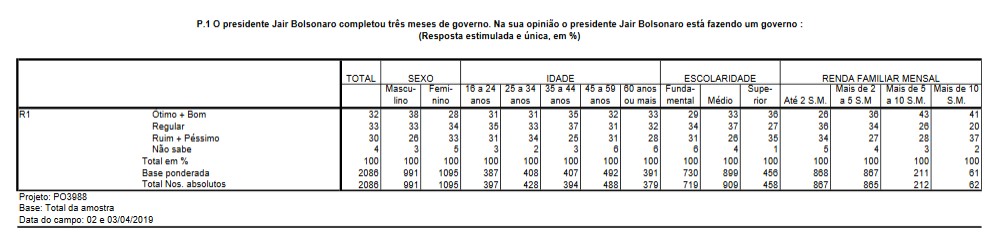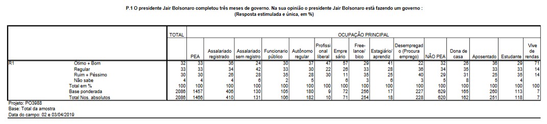 Em seguida, publico também as tabelas da pesquisa de abril de 2019.
