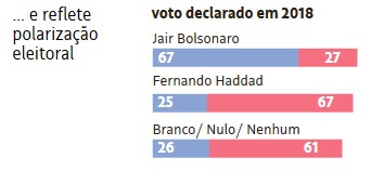 A polarização é, de fato, radical. Entre eleitores de Haddad, 64% acham o governo do Bolsonaro ruim ou péssimo.