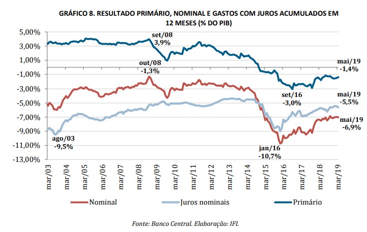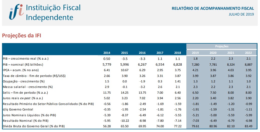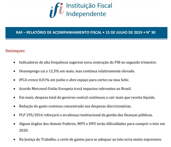 O Instituto Fiscal Independente (IFI) divulgou o seu relatório de julho, cuja íntegra pode ser baixado aqui. Reproduzimos aqui trechos e gráficos.