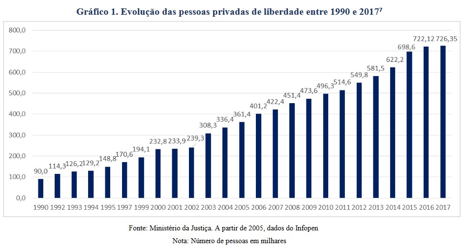 Os números mostram o crescimento dramático da população carcerária e da taxa de encarceramento no país, desde 2000.