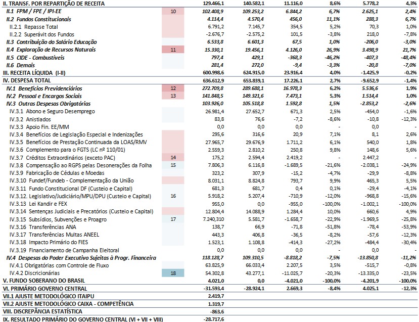 Nota 10 – FPM / FPE / IPI-EE (+R$ 2.625,1 milhões / +2,4%): reflexo do aumento do conjunto dos tributos compartilhados (IR e IPI).