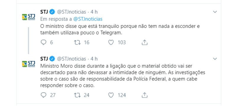 Como se pode constatar, fontes oficiais do STJ confirmaram ligação de Sergio Moro afirmando que o “material obtido vai ser descartado”.
