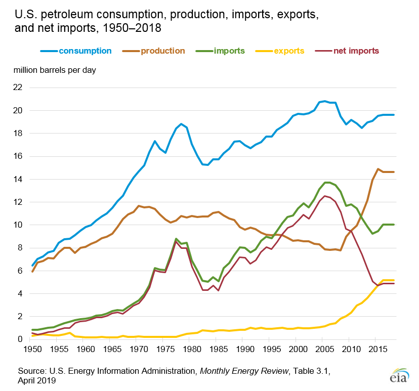 Em 2018, os EUA ultrapassaram a Rússia e a Arábia Saudita em produção de petróleo, assumindo a liderança mundial.