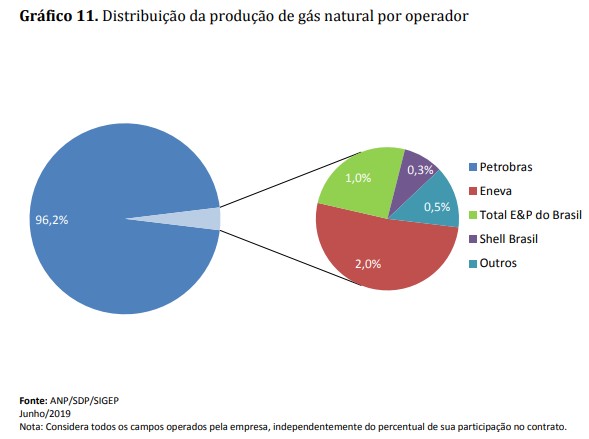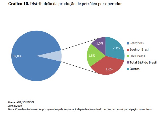 Em junho de 2019, 297 áreas concedidas, duas áreas de cessão onerosa e cinco de partilha, operadas por 33 empresas, foram responsáveis pela produção nacional. Destas, 74 são marítimas e 230 terrestres. Do total das áreas produtoras, 11 são relativas a contratos de áreas contendo acumulações marginais.