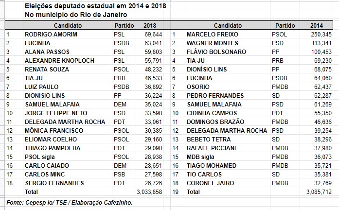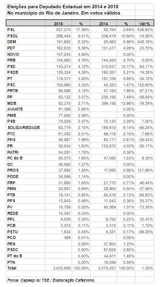 O PSOL perdeu 14% dos votos, o que se explica porque seu principal puxador de votos, Marcelo Freixo, agora disputava para o legislativo federal.