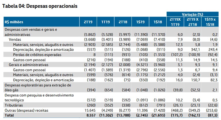 Na tabela abaixo, do balanço da Petrobras, confira os gastos com impostos e pesquisa e desenvolvimento tecnológico: a Petrobras contribuiu com R$ 612 milhões em impostos no primeiro semestre de 2019. Por aí se vê a importância da companhia permanecer estatal. A companhia também investiu R$ 1 bilhão em pesquisa e desenvolvimento tecnológico no primeiro semestre do ano.