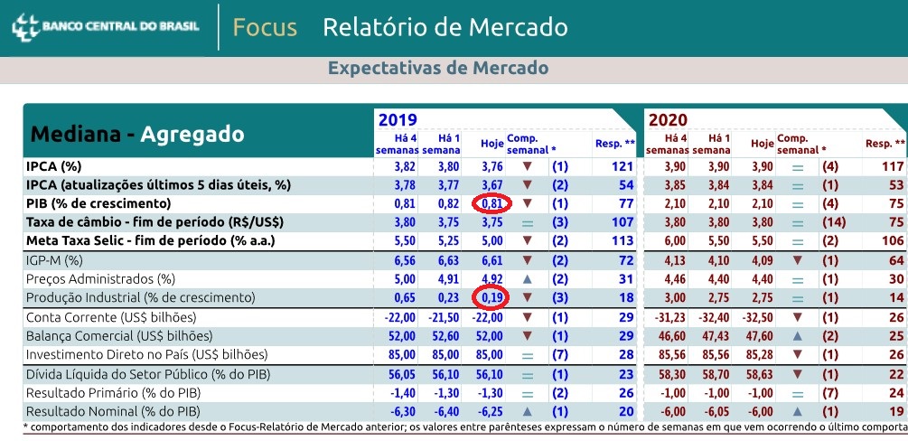 O boletim semanal Focus, do Banco Central, que traz uma média das projeções do “mercado”, reduziu ainda mais sua estimativa para o crescimento do PIB este ano, de 0,82% na semana passada, para 0,81% agora.