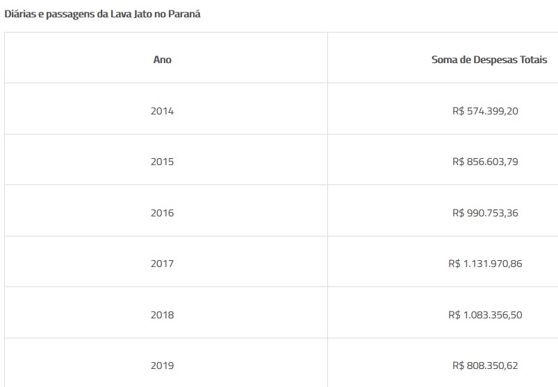 Além do reforço em recursos humanos, a Procuradoria-Geral da República tem mantido também o apoio financeiro com a destinação, em média, de R$ 900 mil por ano, para gastos com diárias e passagens. Mesmo com a vigência das restrições orçamentárias decorrentes da Emenda Constitucional 95/2016, foram destinados R$ 808 mil apenas no primeiro semestre deste ano, para custeio das viagens relacionadas às investigações da força-tarefa.