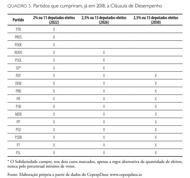 Por outro lado, implantação do fim das coligações na simulação diminui este número. Por fim, vemos que, já em 2018, 14 partidos não cumpriram a clausula de desempenho vigente, indicando uma possibilidade de fusão de partidos ou migração de deputados para partidos maiores, podendo também diminuir a fragmentação do nosso legislativo.