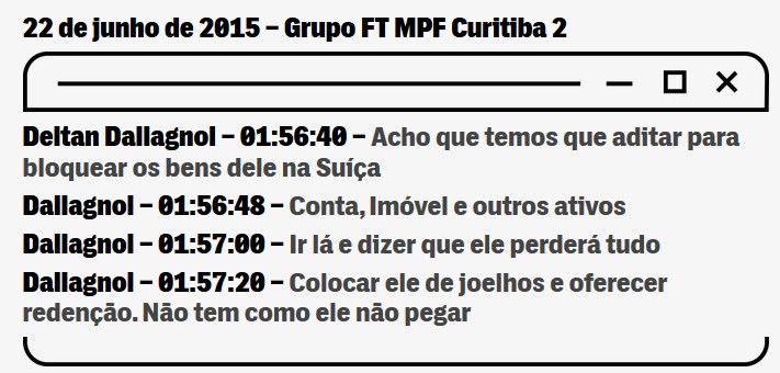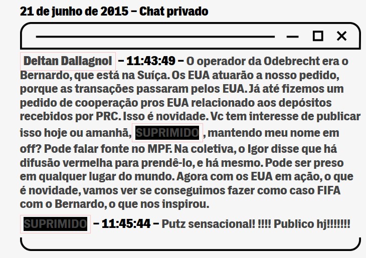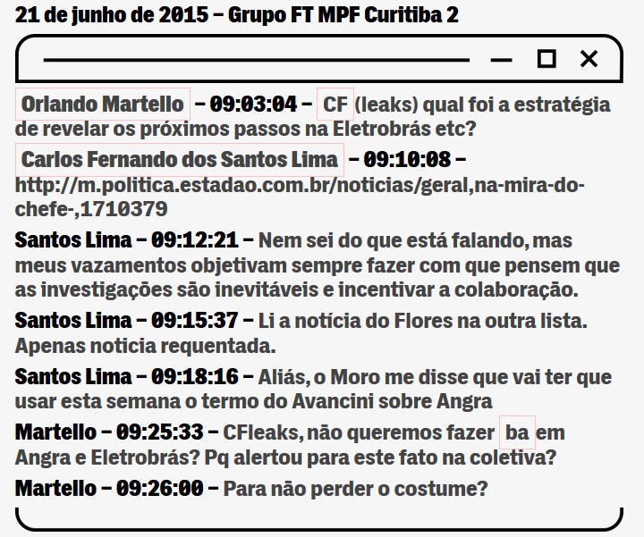 O procurador Carlos Fernando dos Santos Lima, um dos principais mentores da Lava Jato no Ministério Público, admite, em diálogo com outro procuradores, que promovia “vazamentos”, para “fazer com que pensem que as investigações são inevitáveis e incentivar a colaboração”.