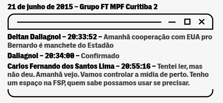 Em outro chat, Santos Lima afirma que tem “espaço na FSP [Folha de São Paulo]”.