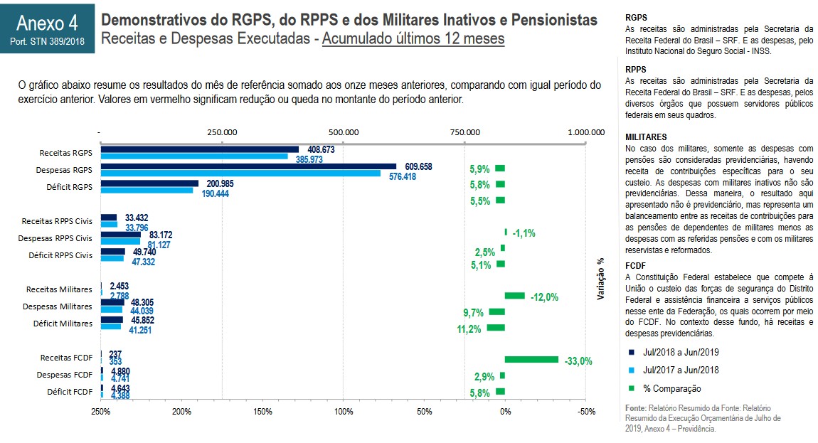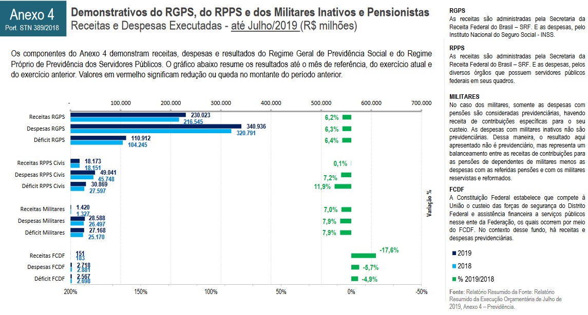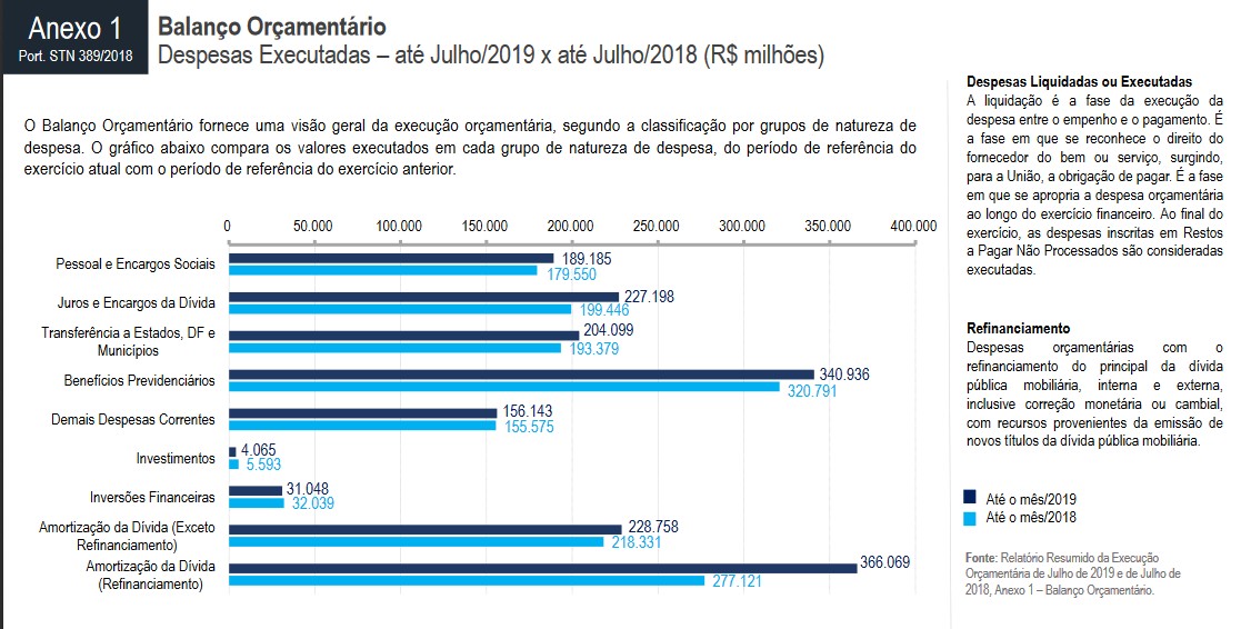 O Ministério da Economia divulgou hoje O Relatório Resumido de Execução Orçamentária da União (RREO), que informa as despesas já realizadas pelo governo até julho de 2019.