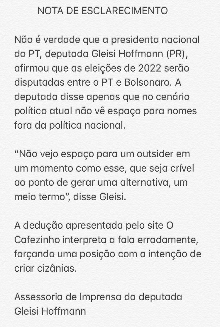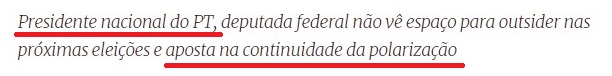 Se esses textos não autorizam o título “Gleisi: 2022 será entre Bolsonaro e PT”, então me desculpe, estou realmente com algum problema grave para interpretar textos!