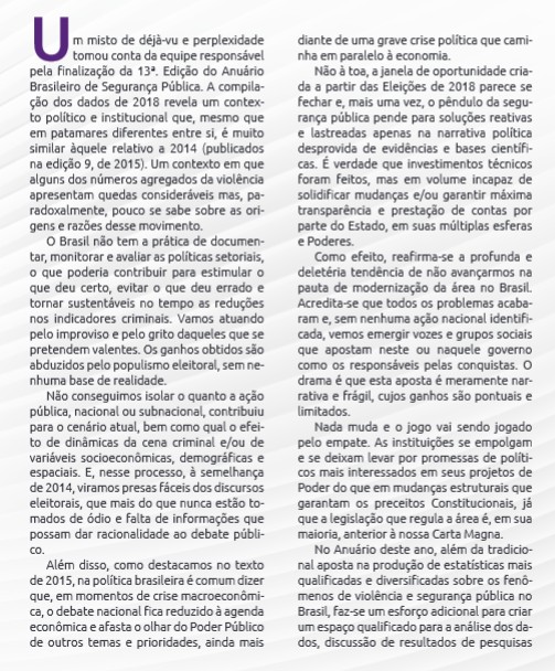 De qualquer forma, 57,3 mil brasileiros mortos violentamente em 2018, ou 27,5 pessoas mortas a cada 100 mil habitantes, ainda é um número vergonhoso.