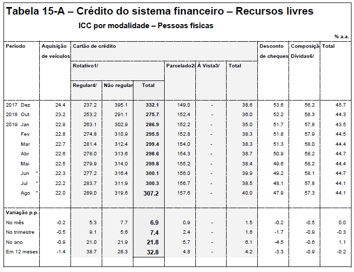 Segundo o Banco Central, o juro rotativo do cartão de crédito para pessoas físicas subiu, na contramão da queda dos juros básicos, 7% em agosto; nos últimos 12 meses, essa categoria de crédito já subiu 33%.