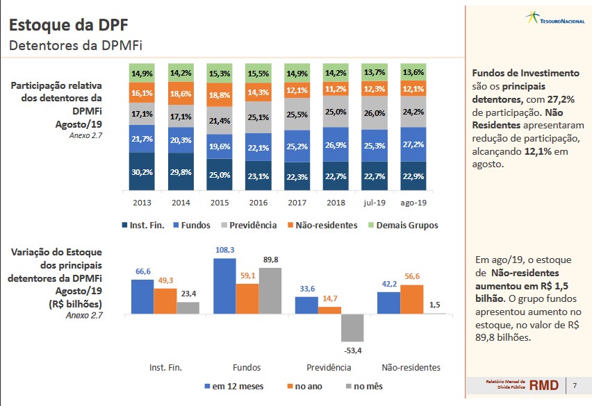 A Secretaria do Tesouro Nacional, órgão do Ministério da Economia, divulgou hoje os números da dívida pública federal em agosto.