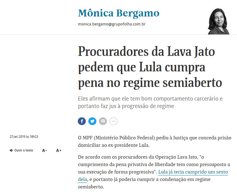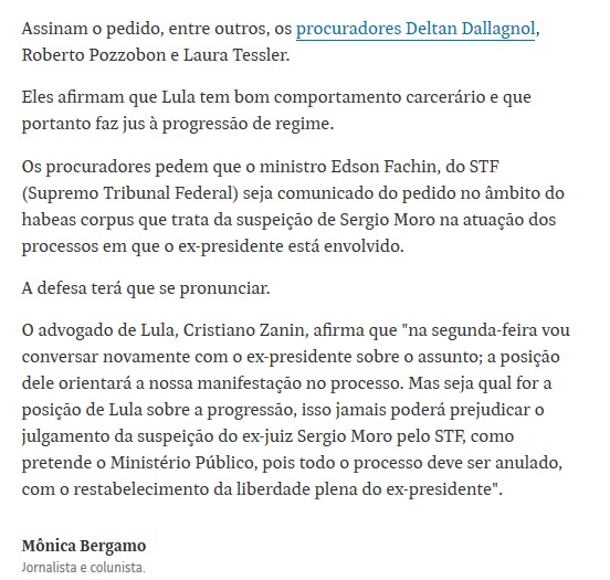 Foi publicado há pouco na coluna da Monica Bergamo:
