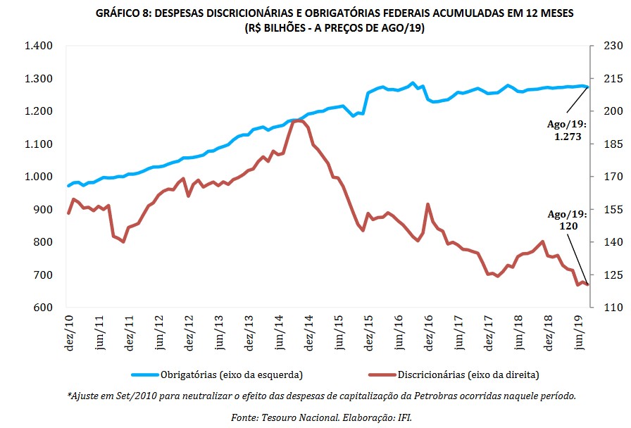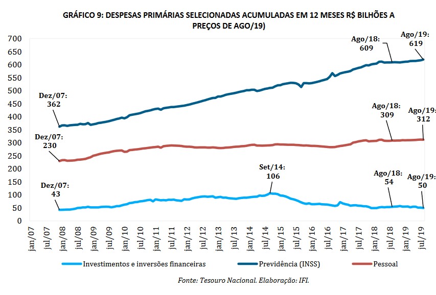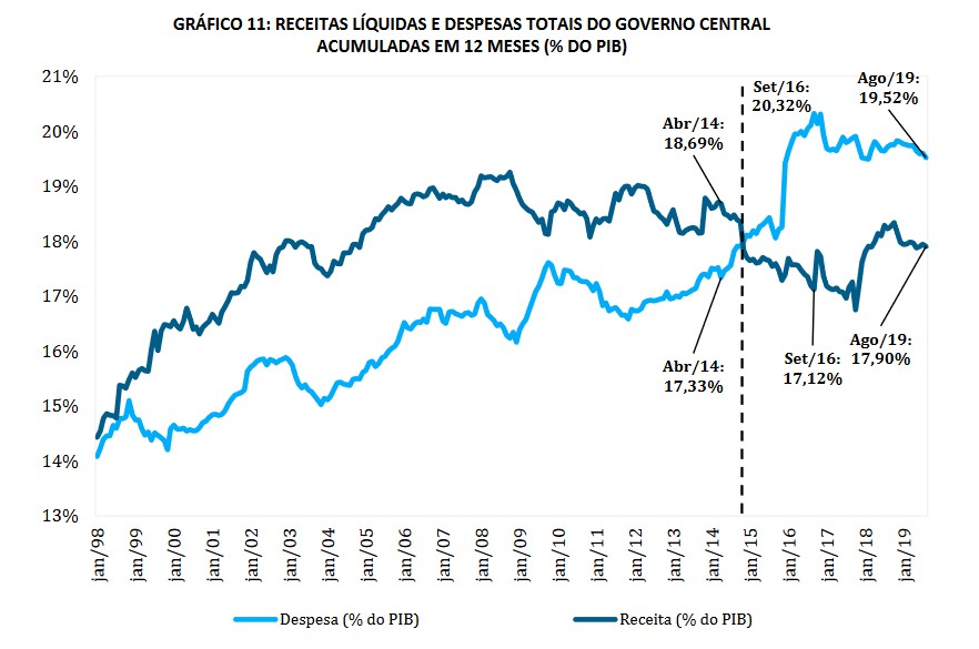 O Instituto Fiscal Independente (IFI) divulgou hoje o seu relatório de acompanhamento fiscal mensal, referente ao mês de outubro. Eu separei alguns gráficos e textos.