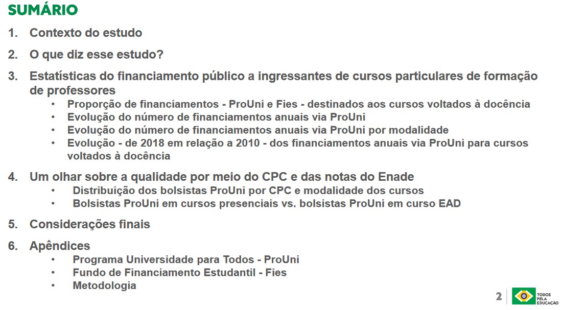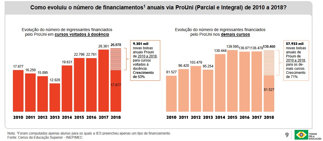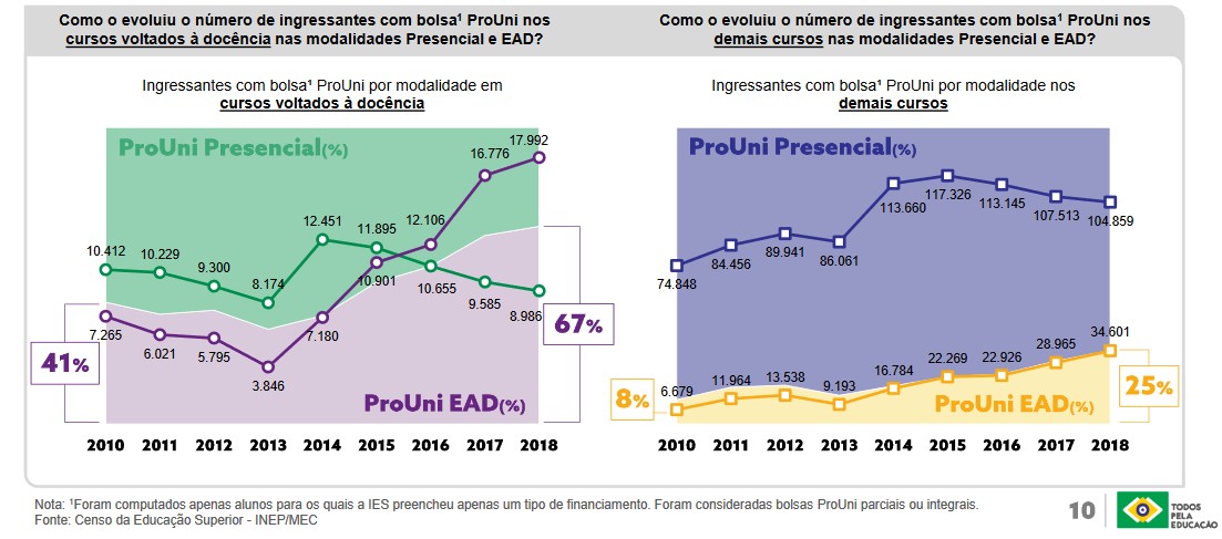 A organização Todos pela Educação divulgou estudo (íntegra aqui) sobre o papel do Prouni na formação os professores brasileiros. Eu separei um print do sumário e alguns gráficos.