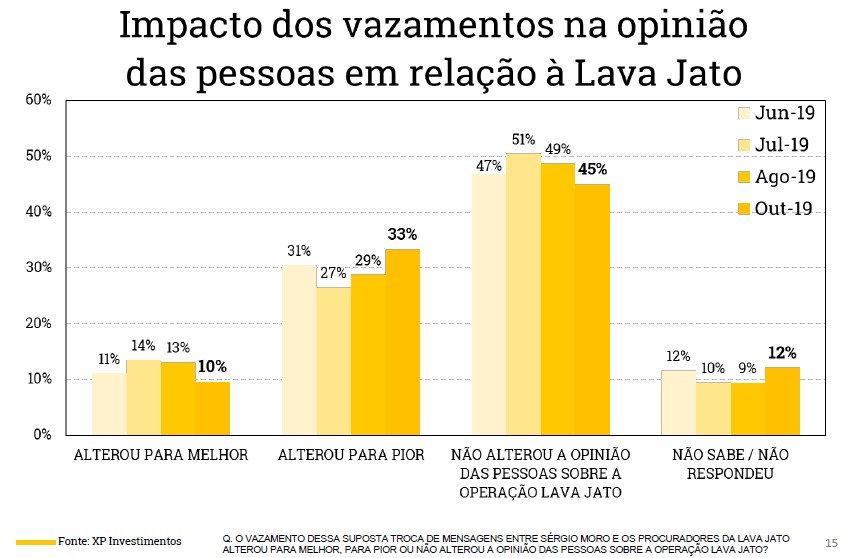 Pesquisa XP Ipespe divulgada hoje avaliou os impactos da “Vaza Jato” e das críticas em geral aos eventuais abusos cometidos pela Lava Jato.