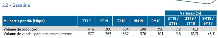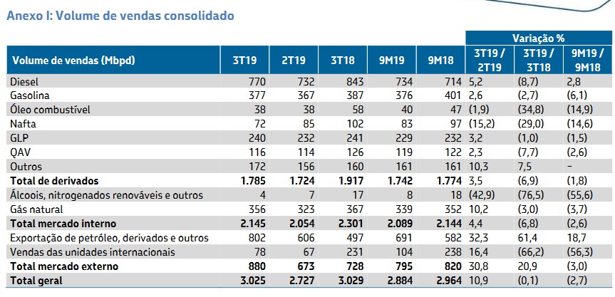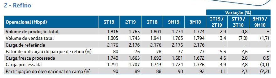 O refino total da Petrobras ficou em 1,8 milhão barris por dia no terceiro trimestre, alta de 2,9% sobre o trimestre anterior. As vendas, porém, foram maiores, com alta de 3,4%.
