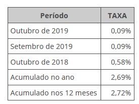 Prévia da inflação de outubro fica em 0,09%