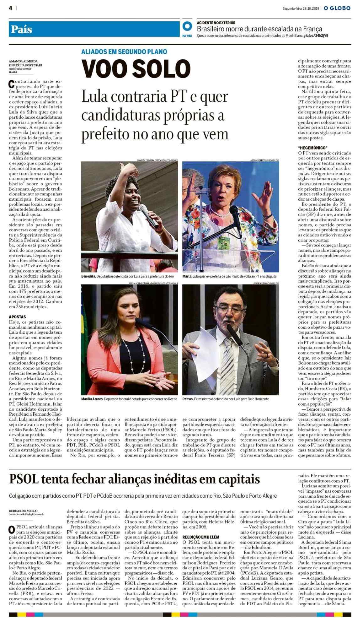 No caso do PT, a legenda enveredou por um caminho, já nas eleições de 2018, que lhe rendeu bons resultados, embora, com a vitória de Bolsonaro quase no primeiro turno, não se possa dizer o mesmo do país. Esse caminho, muito centrado em torno da campanha pela liberdade do ex-presidente Lula, cria algumas dificuldades para construir alianças com outras legendas.