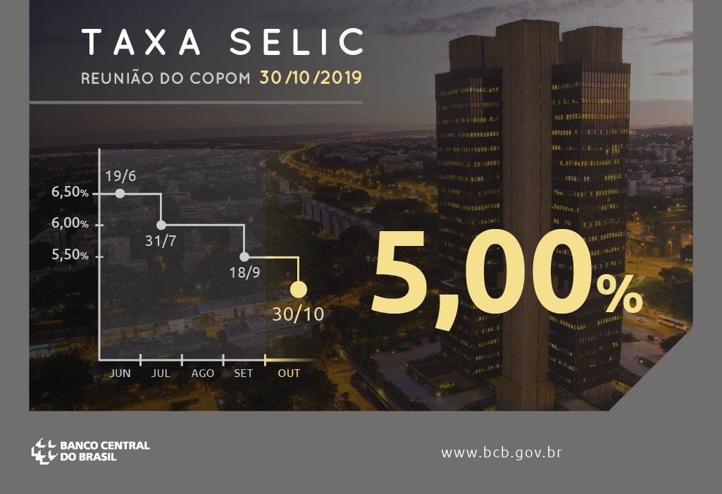 Copom reduz taxa Selic para 5,00% a.a.