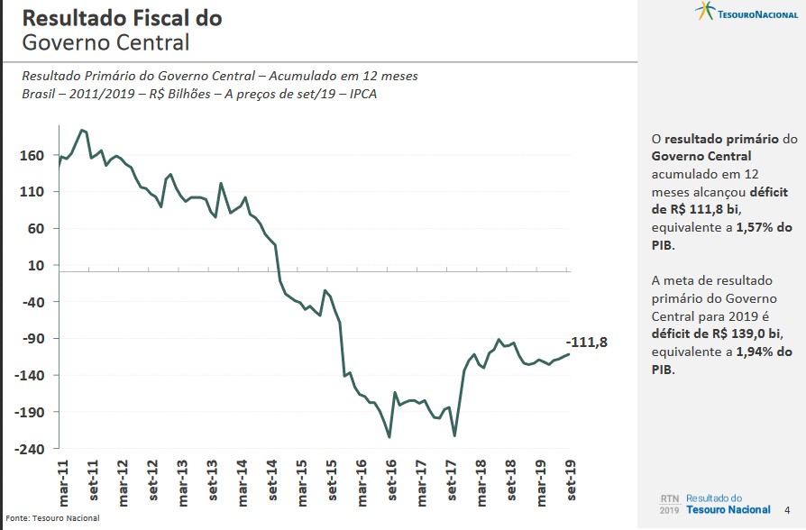 A Secretaria do Tesouro Nacional divulgou hoje os dados fiscais até setembro.
