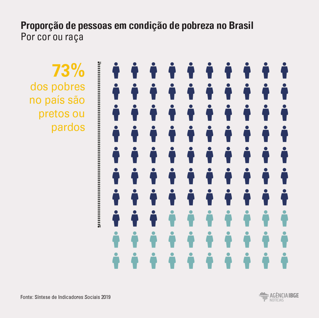 A pobreza atinge sobretudo a população preta ou parda, que representa 72,7% dos pobres, em números absolutos 38,1 milhões de pessoas. E as mulheres pretas ou pardas compõem o maior contingente, 27,2 milhões de pessoas abaixo da linha da pobreza.