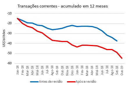 A desvalorização cambial, que eleva preços de bens essenciais atrelados ao dólar, como o pão, o diesel e a gasolina, não foi causada por nenhum ato calculado do governo. Muito pelo contrário. É fruto antes da incompetência federal, que não está tomando nenhuma medida para conter a deterioração das nossas contas externas, como mostra o gráfico abaixo, do Banco Central, sobre as transações correntes, um dos principais indicadores do balanço de pagamentos.