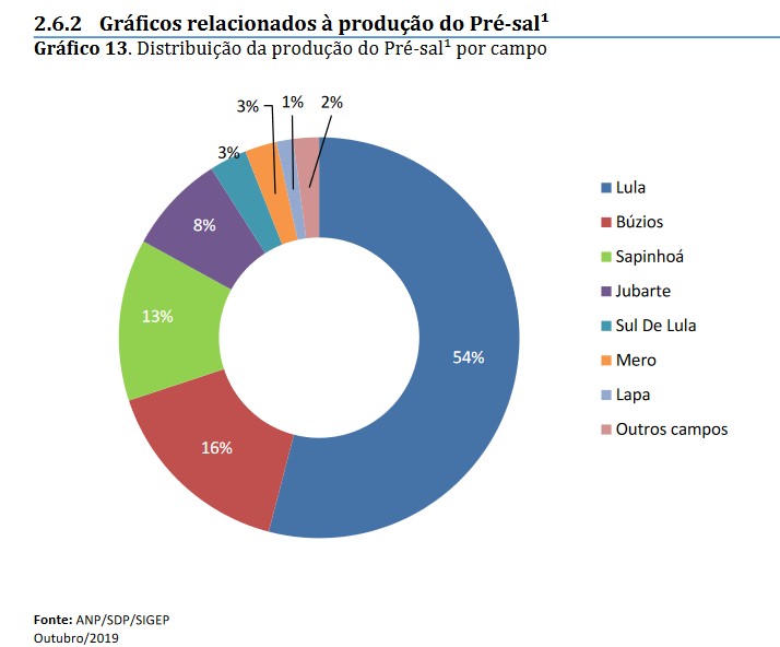 A produção do Pré-sal em outubro aumentou 4,6% em relação a setembro, totalizando 2,394 milhões de barris de óleo equivalente por dia (MMboe/d), sendo 1,905 milhões de barris por dia (MMbbl/d) de petróleo e 77,6 milhões de metros cúbicos por dia (MMm3/d) de gás natural. Em relação a outubro de 2018, o aumento foi de 30,1%. A produção do Pré-sal foi oriunda de 111 poços e correspondeu a 63,1% do total produzido no Brasil.