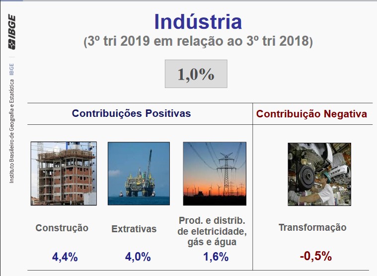 “Já entre as atividades que caíram, o destaque é a indústria de transformação, afetada pela queda nas exportações em função da menor demanda mundial e a crise da Argentina”, analisa a coordenadora de Conta Nacionais do IBGE.