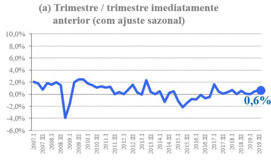 PIB cresce 1,2% no em relação ao terceiro trimestre de 2018