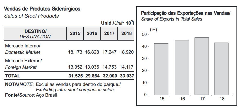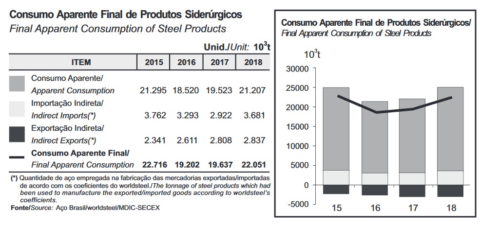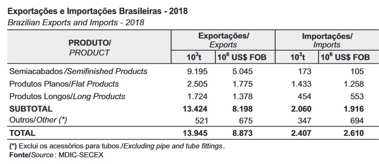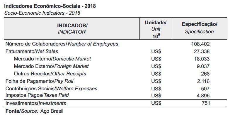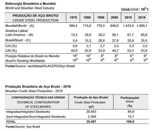 No site do Instituto Aço Brasil, está disponível o Anuário Estatístico 2019, com todos os dados sobre a indústria brasileira do aço, e alguma coisa também da indústria mundial. Para baixar, clique aqui.