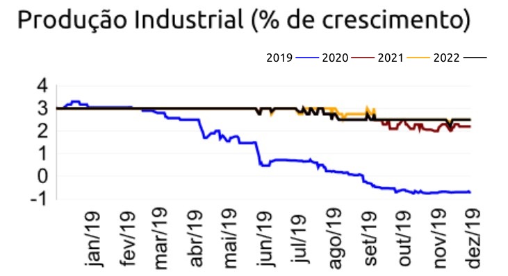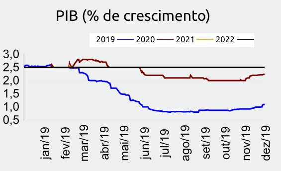 Para 2020, há expectativa de crescimento de 2,24%, e para 2021 e 2022, as projeções são de 2,5% de alta do PIB.