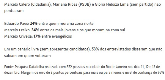 É uma das primeiras pesquisas para grande capital feita por um dos institutos mais sérios do país, o Datafolha, e por isso a sua importância extravasa para fora do Rio de Janeiro.