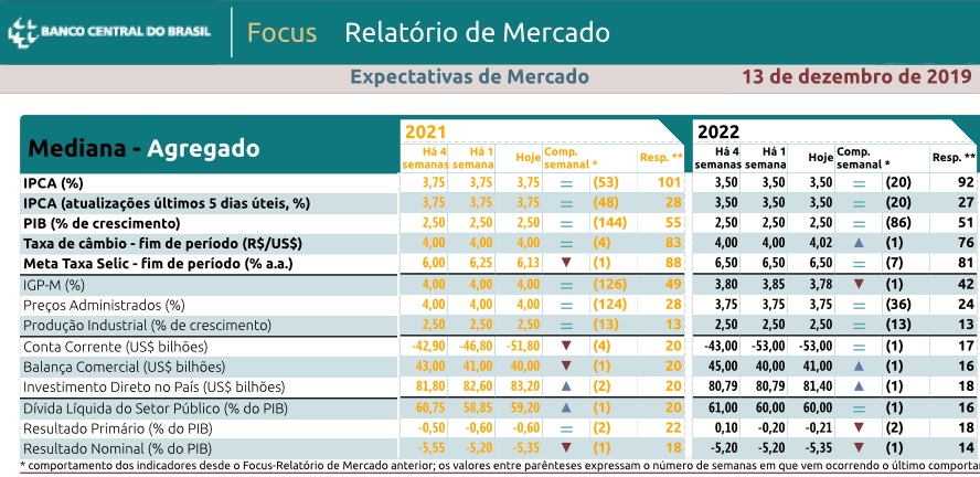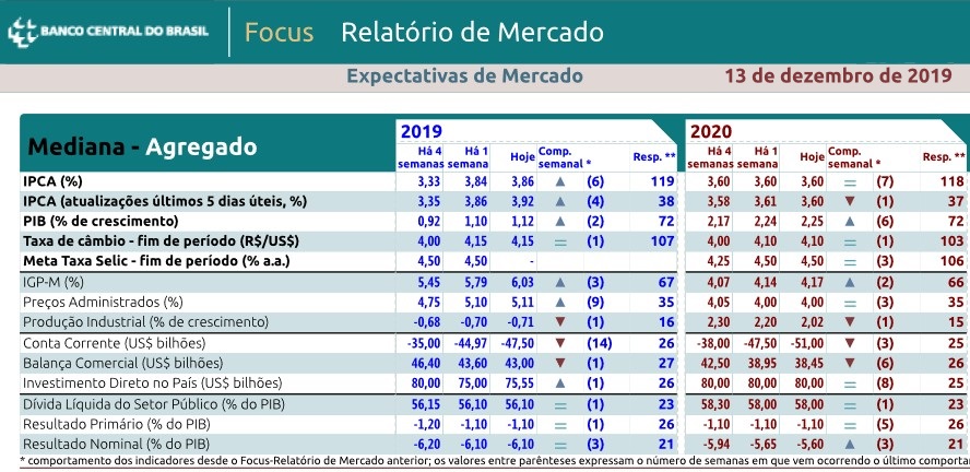 Já o PIB deve crescer 1,12% segundo o Focus.