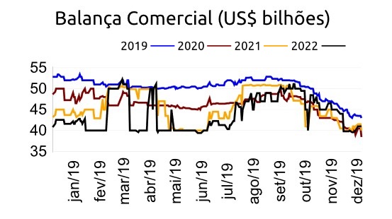Para 2021 e 2022, há previsão de déficit em conta corrente de US$ 52 e 53 bilhões, respectivamente.