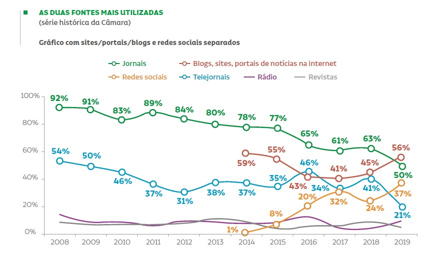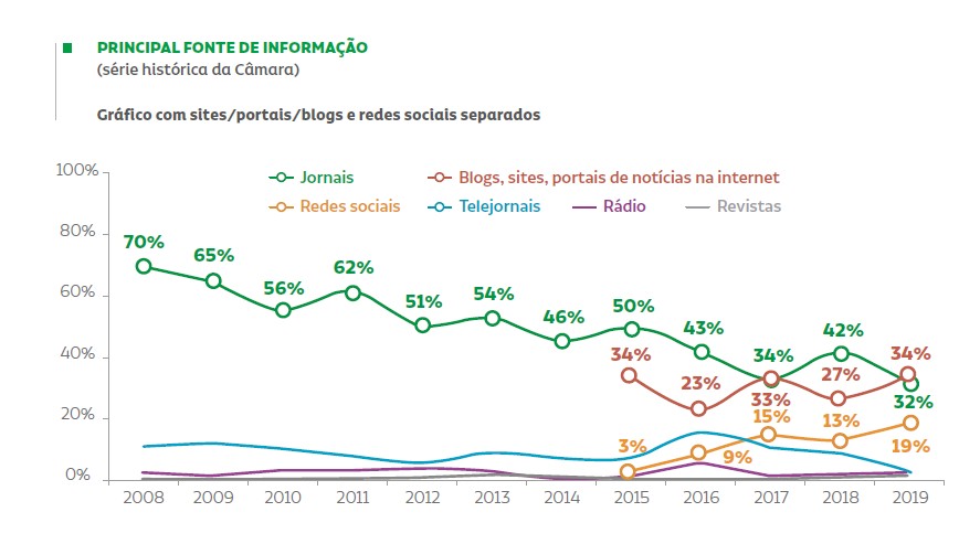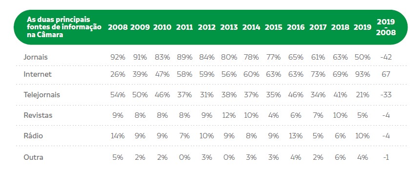 Blogs e portais de notícia ultrapassaram jornais e já são o principal meio de informação do parlamento.
