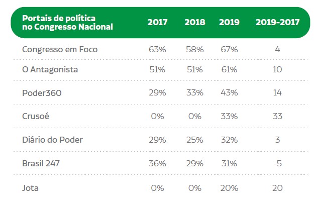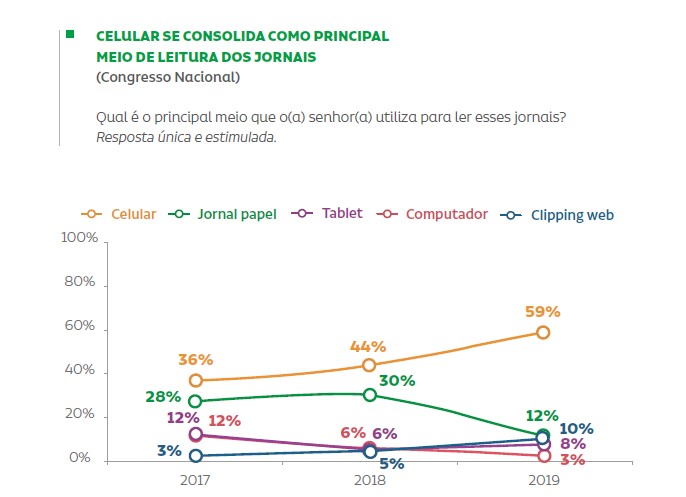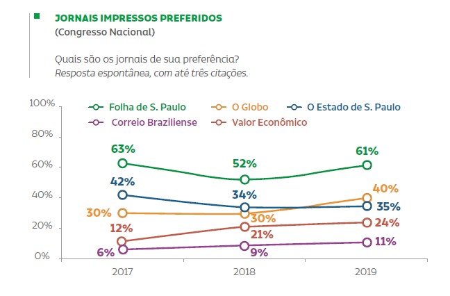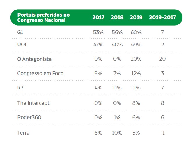 O instituto FSB divulgou hoje uma pesquisa sobre os hábitos de mídia dos parlamentares (deputados e senadores) do congresso nacional.