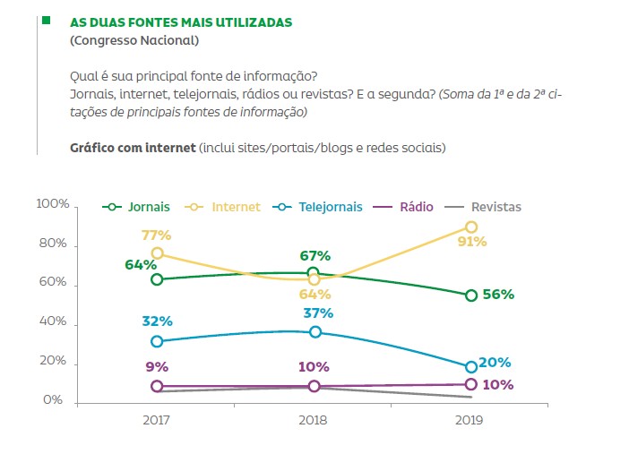O instituto FSB divulgou hoje uma pesquisa sobre os hábitos de mídia dos parlamentares (deputados e senadores) do congresso nacional.