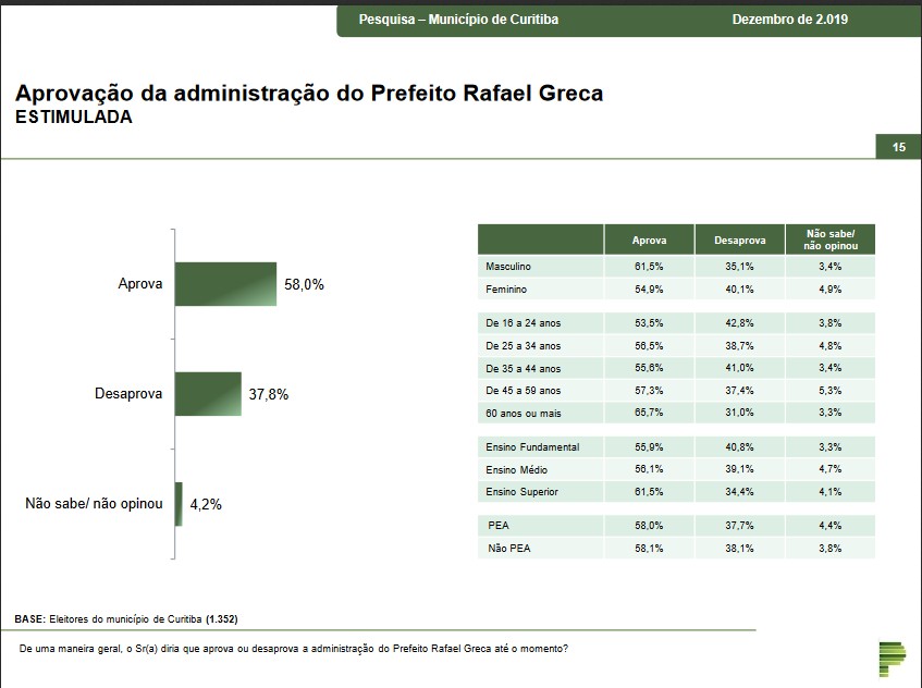 O prefeito Rafael Greca, por sua vez, tem aprovação de 58%.