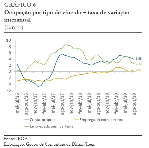 De acordo com o estudo, a aceleração do crescimento deve ocorrer por meio da ocupação da capacidade ociosa da economia – o Indicador Ipea de Hiato do Produto, que mede o grau de ociosidade e está em 2,7%, deve fechar 2020 ainda com PIB 2,0% abaixo de seu potencial. Essa aceleração do crescimento dependerá, no entanto, da continuidade das reformas no Congresso, especialmente da reforma tributária e da administração pública. A perspectiva da política fiscal, em particular quanto à capacidade de manter a regra do teto dos gastos, é considerada chave para a consolidação do crescimento.