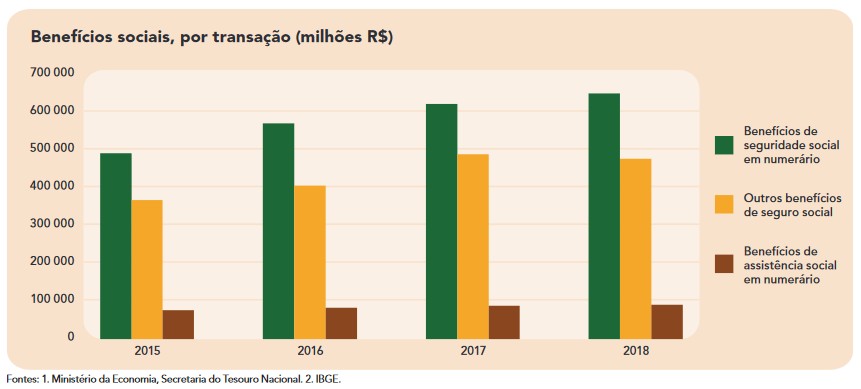 No caso dos benefícios sociais, a diferença de comportamento entre os dois anos se deve, principalmente, ao evento da liberação de saques das contas inativas do Fundo de Garantia por Tempo de Serviço (FGTS), observado em 2017 e que não se repetiu em 2018.