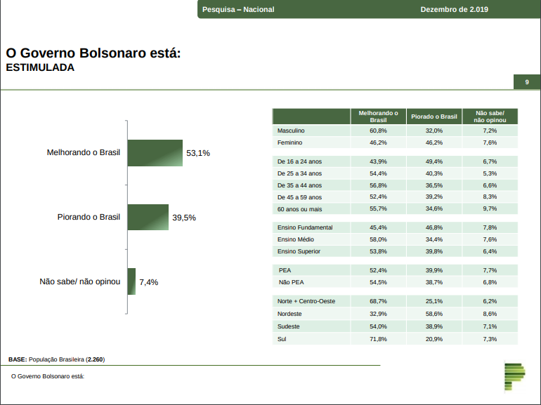 A pesquisa foi feita entre os dias 7 a 11 de dezembro.