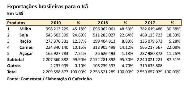 Por curiosidade, verifiquei as exportações brasileiras para o Irã, e descobri que se trata de um dos principais mercados de produtos brasileiros.