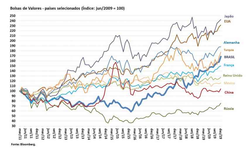 As Bolsas de Valores tiveram um bom ano em 2019, de maneira geral, com destaque para Japão, EUA, Alemanha, Turquia e Brasil.