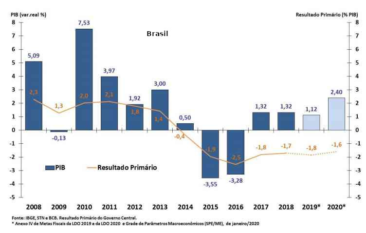 O resultado primário, em % do PIB, das principais economias mundiais, mostra que o Brasil não está tão mal assim. Nosso déficit estimado para 2020 é de 1,6% do PIB, percentual bastante abaixo do que se observa no Japão, EUA e China. A Alemanha, porém, mantém um vigoroso superávit primário desde 2011.